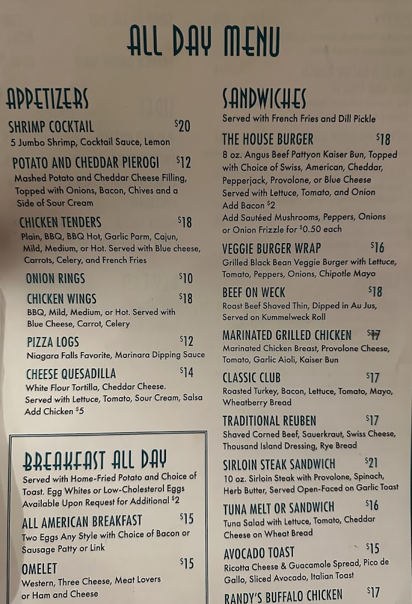 Welcome to Three Sisters Cafe, an inviting culinary gem nestled in the heart of Niagara Falls. Here, the menu is a delightful blend of traditional favorites and hearty portions designed to satisfy every palate. Breakfast enthusiasts will love the customizable options, ranging from a generous buffet to made-to-order meals. The omelets, highly praised by customers, are both flavorful and quick to arrive at your table.